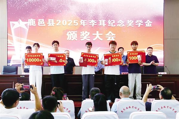 8月15日,鹿邑縣2025年李耳紀(jì)念獎(jiǎng)學(xué)金頒獎(jiǎng)大會(huì)在縣教體局舉行。侯璇青、李易澤等10位優(yōu)秀學(xué)子獲得獎(jiǎng)學(xué)金。圖為與會(huì)領(lǐng)導(dǎo)和獲獎(jiǎng)學(xué)子合影留念。    記者 侯國(guó)防 通訊員 宋夢(mèng)麗 攝