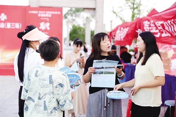 8月14日、15日,鹿邑縣人社局等單位在弘道苑廣場(chǎng)聯(lián)合舉辦“職引未來(lái) 筑夢(mèng)青春”專場(chǎng)招聘會(huì)。此次招聘會(huì)邀請(qǐng)28家企業(yè)參加,提供涵蓋食品加工、智能制造、電子商務(wù)、餐飲服務(wù)等領(lǐng)域優(yōu)質(zhì)就業(yè)崗位50余個(gè)。圖為招聘會(huì)現(xiàn)場(chǎng)。    記者 侯國(guó)防 通訊員 陳朝威 攝