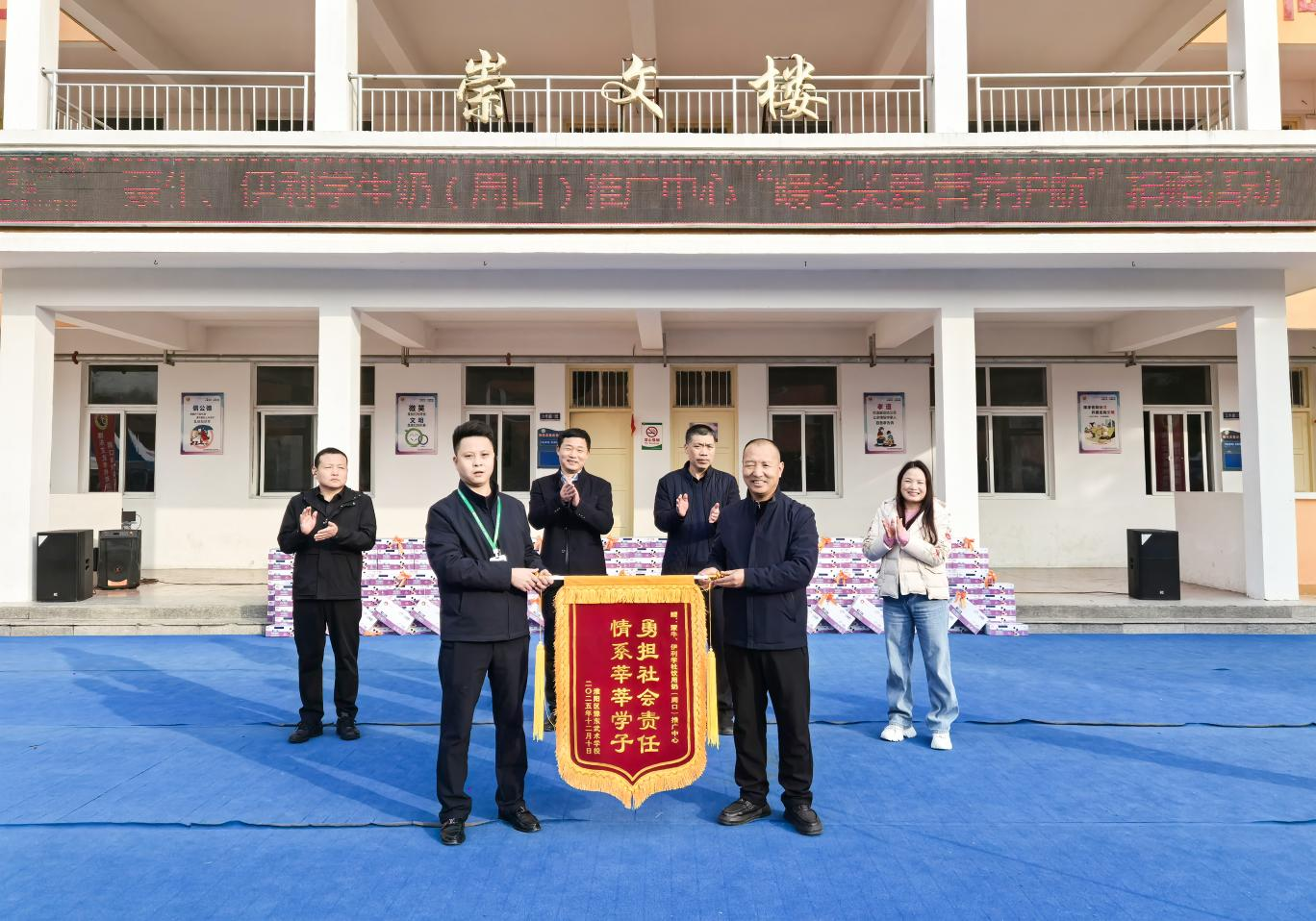 最后,包勇平代表愛心企業(yè)向豫東武術(shù)學(xué)校校長(zhǎng)朱明峰授捐贈(zèng)牌,豫東武術(shù)學(xué)校向愛心企業(yè)回贈(zèng)錦旗,并邀請(qǐng)參會(huì)領(lǐng)導(dǎo)及師生代表共同合影留念。