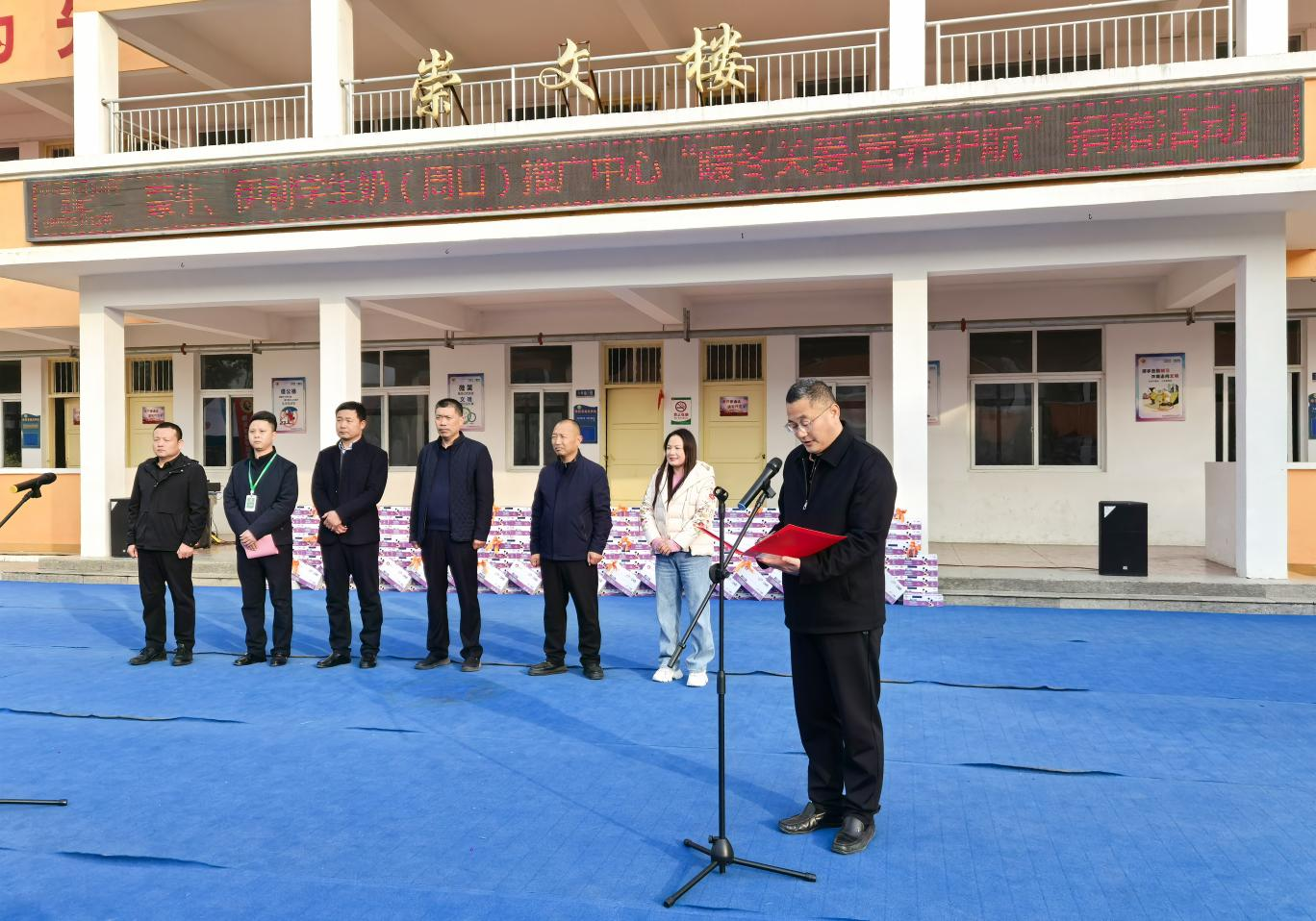 活動(dòng)開始,韓玉東代表淮陽區(qū)教育系統(tǒng)致歡迎辭。他向蒙牛、伊利學(xué)生奶(周口)推廣中心的慷慨捐贈(zèng)表示衷心感謝。他指出,此次企業(yè)的捐贈(zèng),不僅是一箱箱牛奶,更是一份份沉甸甸的關(guān)懷與期望?!拔镔|(zhì)支持”能夠讓孩子們?cè)诤涞亩精@得充足的營(yíng)養(yǎng),“知識(shí)賦能”則通過健康科普,幫助孩子們樹立科學(xué)的飲食觀念,培養(yǎng)良好的生活習(xí)慣,期待未來有更多企業(yè)和社會(huì)力量加入教育公益事業(yè),共同為孩子們的健康成長(zhǎng)保駕護(hù)航。