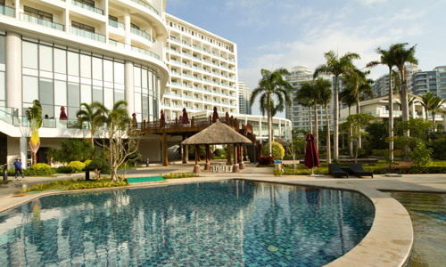 三亞龍悅海景大酒店是由北京鑫地集團(tuán)投資興建,是一家集旅游度假、商務(wù)休閑于一體的高端復(fù)合型精品海景酒店。酒店位于中國海南島南端的三亞市三亞灣西岸,俯瞰壯麗的三亞灣海景和西島, 距三亞鳳凰國際機(jī)場10分鐘車程, 距離市區(qū)僅8分鐘車程;酒店建筑面積35000平方米,與著名的天涯海角、 南山佛教文化苑、 南山大小洞天、 西島和三亞國際高爾夫球場近在咫尺。酒店擁有各式海景房、海景套房共344間(套),均配有液晶電視、智能空調(diào)、頂級(jí)床上用品,配以超大觀景陽臺(tái),可一覽海天之間的蔚藍(lán)深韻。