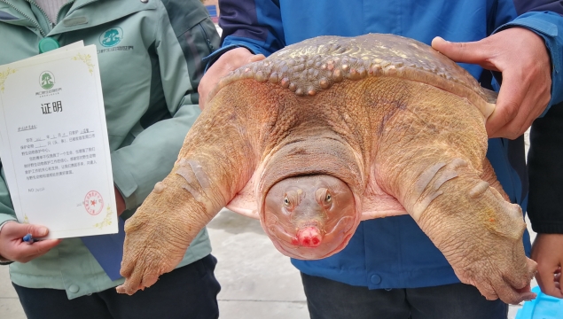 近日,鄲城縣自然資源局接到縣城市管理局公園管理辦公室工作人員救助電話,稱在人民公園岸邊又發(fā)現(xiàn)一只“大老鱉”。接到救助電話后,該局領(lǐng)導(dǎo)立即指派野生動(dòng)植物保護(hù)和自然保護(hù)地管理股工作人員前往現(xiàn)場救助?!?a href="http://m.cohlcd.com/content/2021-03/23/content_925978.html" target="_blank" >[詳細(xì)]