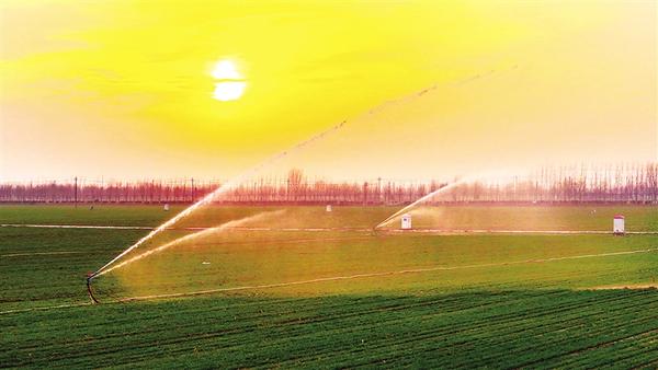 12月8日,在扶溝縣大李莊街道中營(yíng)村的農(nóng)田里,農(nóng)戶正抓緊趁晴好天氣為冬小麥澆灌封凍水。