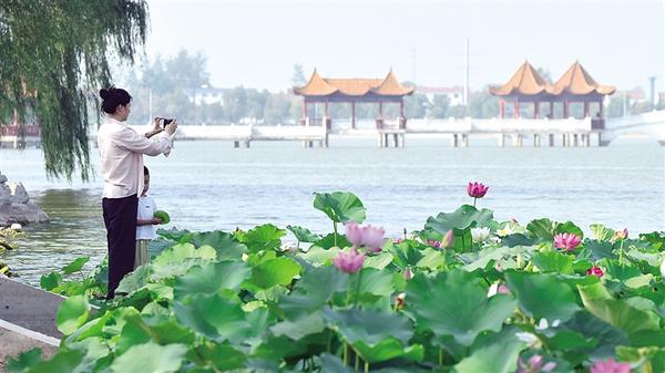 夏天的淮陽(yáng)就像一幅寫意畫(huà)卷,在清涼的湖風(fēng)吹拂下徐徐展開(kāi)。登上龍湖邊的六藝閣,遠(yuǎn)處的古城,臥波的大橋,近處的荷花,搖曳的蘆葦,仿古的碼頭,靜泊的游船,歸巢的飛鳥(niǎo)……放眼處,無(wú)不令人陶醉其間。