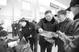 3月6日,“關(guān)愛農(nóng)民工法治宣傳周”集中宣傳活動(dòng)在周口客運(yùn)中心站門前舉行,相關(guān)單位設(shè)立咨詢服務(wù)臺(tái),發(fā)放宣傳資料,回答群眾咨詢。記者 王映  攝