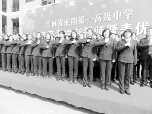 3月21日,淮陽(yáng)一高舉行 “高考百日沖刺”誓師大會(huì)。校長(zhǎng)王業(yè)生及高一、高二、高三年級(jí)全體師生參加了會(huì)議。青年教師代表付士翔、家長(zhǎng)代表張鳳啟及學(xué)生代表分別進(jìn)行了充滿激情的發(fā)言。在距2015年高考還有100天的日子里,師生莊嚴(yán)宣誓:“以頑強(qiáng)的意志、百倍的激情、無(wú)窮的潛力,以最刻苦的精神、最堅(jiān)韌的毅力,全力以赴,奮勇?tīng)?zhēng)先,爭(zhēng)分奪秒,苦戰(zhàn)百日,決戰(zhàn)高考,誓創(chuàng)輝煌?!?豆紀(jì)鋒 攝)