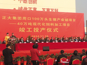 正大集團(tuán)周口100萬頭生豬產(chǎn)業(yè)鏈項目竣工投產(chǎn)儀式現(xiàn)場。