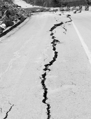 4月26日,318國(guó)道聶拉木縣城至樟木鎮(zhèn)15公里處路面開(kāi)裂。新華社發(fā)