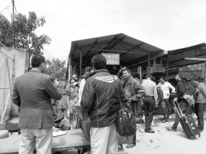 4月26日,人們?cè)诩拥聺M都機(jī)場(chǎng)等待離開(kāi)。新華社記者 周盛平 攝