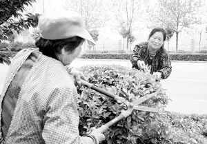 昨日,興旺路上兩名花工正在修剪道路隔離帶內(nèi)的花木。春暖花開(kāi)正是修葺花木的最佳時(shí)機(jī),市園林部門(mén)組織人員對(duì)市區(qū)綠化植物進(jìn)行適時(shí)修整,確保環(huán)境整潔有序。                                                                  (記者  沈湛 攝)