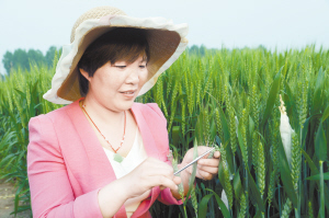 下圖:昨日,項(xiàng)城市農(nóng)科所技術(shù)人員正在進(jìn)行小麥雜交授粉。連日來(lái),該所抓住小麥?zhǔn)诜燮诘那绾锰鞖猓M織技術(shù)人員開(kāi)展雜交授粉實(shí)驗(yàn),確保小麥單產(chǎn)同步提高。(蔣樹(shù)保 攝)
