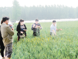 左圖:當(dāng)前正是小麥后期管理的關(guān)鍵時(shí)期。昨日,川匯區(qū)農(nóng)林局“黨員農(nóng)業(yè)技術(shù)服務(wù)隊(duì)”深入田間地頭,向農(nóng)民支招小麥后期管理技術(shù)。