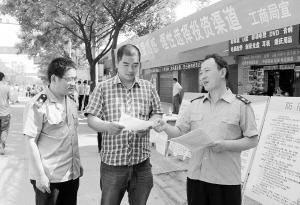 5月16日上午,扶溝縣工商人員向過往市民講解非法集資的危害。當日,該縣處置非法集資領導組在縣城桐丘路舉辦打擊非法集資現(xiàn)場宣傳教育活動,各參加單位通過發(fā)放資料、現(xiàn)場咨詢等形式告知廣大市民拒絕參與非法集資。盧付昌 攝