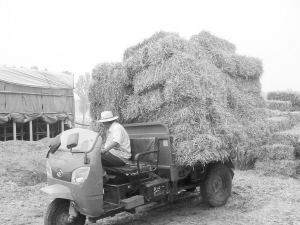 6月5日,商水縣魏集鎮(zhèn)菇農(nóng)正在收購小麥秸稈。該鎮(zhèn)商會(huì)以每斤0.1元的價(jià)格大量收購小麥秸稈,為當(dāng)?shù)胤N植雙孢菇的農(nóng)民積累了原料,同時(shí)也銷往外地造紙廠。(蘇建廣  攝)