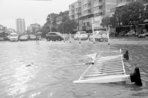 廣西、江西等地遭遇持續(xù)強(qiáng)降雨 中央氣象臺(tái)繼續(xù)發(fā)布暴雨藍(lán)色預(yù)警      6月14日,在江西宜春明月北路,路面交通護(hù)欄被洪水沖倒。6月13日起,廣西、江西等地遭遇大范圍強(qiáng)降雨。中央氣象臺(tái)14日10時(shí)繼續(xù)發(fā)布暴雨藍(lán)色預(yù)警,預(yù)計(jì)14日14時(shí)至15日14時(shí),湖南東北部和中部、湖北東南部、安徽南部、江西北部、福建西北部、浙江大部、上海以及西藏東南部、云南西部和東南部、廣西北部、廣東中北部、海南南部等地的部分地區(qū)有大雨或暴雨。新華社發(fā)