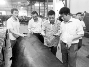 在生產(chǎn)車間,高巍向記者介紹皮革生產(chǎn)工藝和流程。