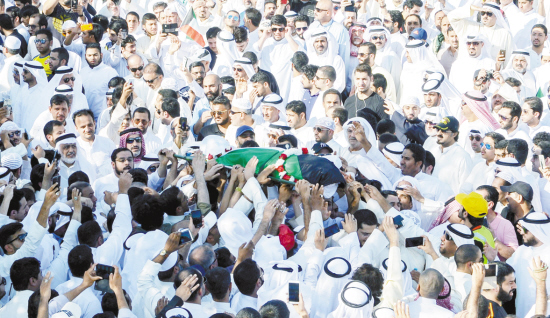 科威特民眾悼念清真寺爆炸事件遇難者 6月27日,民眾在科威特北部蘇萊伊哈特陵園參加活動,悼念伊瑪目薩迪克清真寺爆炸事件的遇難者。科威特數(shù)千名民眾27日在科北部蘇萊伊哈特陵園悼念伊瑪目薩迪克清真寺爆炸事件的遇難者。
