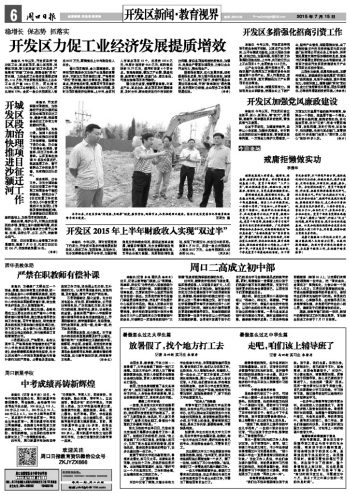 開發(fā)區(qū)2015年上半年財政收入實(shí)現(xiàn)“雙過半”