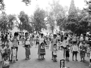 日前,周口東方愛(ài)嬰早教中心開(kāi)展戶外活動(dòng),培養(yǎng)孩子從小學(xué)會(huì)“分享”和社會(huì)交往。家長(zhǎng)們帶著食物,讓孩子和其他小朋友分食。圖為家長(zhǎng)和寶寶在表演節(jié)目。